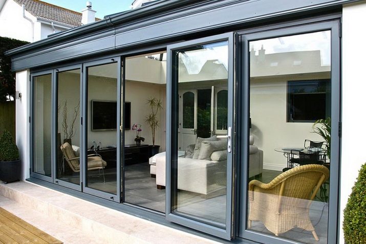 - أبواب قابلة للطي (“أكورديون”) – يتوافق هذا الحل جيدًا مع كل من المجموعات الباردة والدافئة ، ولكن يتم وضعه دائمًا داخل المبنى (في المكتب أو المطبخ أو غرفة النوم) ؛