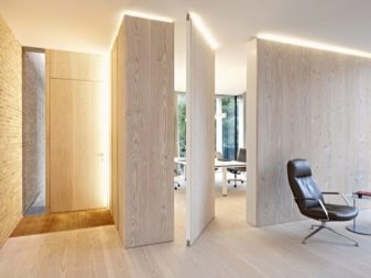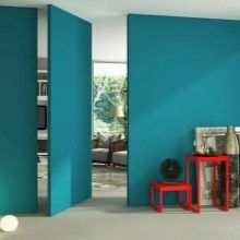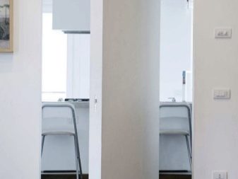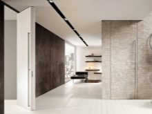 غالبًا ما يتم تثبيت أبواب البندول في محلات السوبر ماركت الكبيرة ، وبناءً على ذلك ، يمكن للمرء أن يتخيل مدى جودة ظهور هذا التصميم في نسخة مخفية. بالمناسبة ، هذه الأبواب ليست عازلة للصوت بشكل خاص..