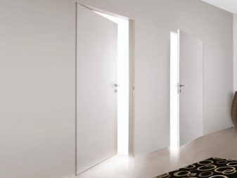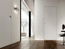 - أبواب بها صناديق مخفية على الفور يتم وضع المعجون ومطابقته مباشرة مع الداخل, لذلك يمكن أن تكون غير مرئية تمامًا في الحائط – لا يظهر سوى مخطط رفيع. بالإضافة إلى ذلك ، يتم تقسيمها إلى جانب واحد ، وغير مرئي من جانب ، وجانبين ، وهو غير مرئي من كلا الجانبين. كقاعدة عامة ، غالبًا ما يتم طلب الأخير ، لأنها تشغل مساحة أكبر (على طول الحواجز بين الغرف من 75-100 مم) ويصعب تجميعها. وكقاعدة عامة ، يتم إخفاء الباب فقط من جانب المدخل..