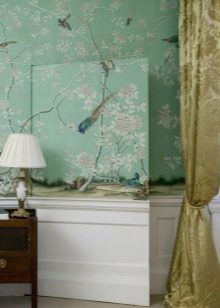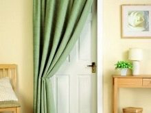 - تحت الستارة. يحظى هذا بشعبية خاصة في التصميمات الداخلية الريفية أو الريفية ، وكذلك في الكلاسيكيات بستائرها الضخمة الثقيلة. ليس من الضروري على الإطلاق تحويل الباب إلى نافذة – يمكنك تعليق صورة عليه وتعليقه بستائر جميلة متدفقة على الجانبين. أو ، وهو أمر مرحب به بشكل خاص في التصميمات الداخلية الكلاسيكية ، ضع الستائر أو الستائر المتساقطة على شكل موجات على طول الجدار بالكامل ، وفي مكان ما هناك ، تحت هذا القماش ، سيكون مدخل غرفتك السرية. يمكن أيضًا وضعه تحت شاشة..