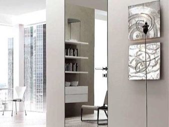 - تحت المرآة. في هذه الحالة ، يكون الباب إما مُغلفًا بمادة عاكسة ، أو يتم تعليق مرآة منفصلة عليه ببساطة – بارتفاع كامل أو في نصفه ، يعتمد بالفعل على مقدار ما تريد إخفاءه.