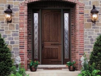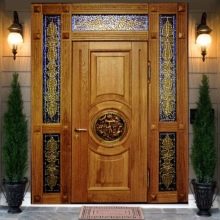 الأكثر فخامة وأناقة من الخارج هي الأبواب المصنوعة من الخشب الصلب الطبيعي. يزينها العديد من الشركات المصنعة بأنماط مخرمة ومنحوتات. هذا الباب يبدو أصليًا وغنيًا جدًا. بالإضافة إلى ذلك ، يقوم المصنعون الآن بتغيير نسيج هذه الأبواب ، مما يجعلها ضخمة وغير عادية. هذا النموذج يبدو أنيقًا جدًا. يمكن استكماله بتجهيزات جميلة وضخمة..