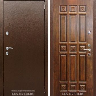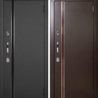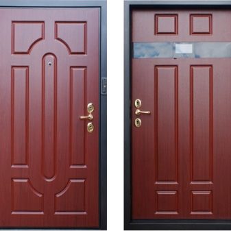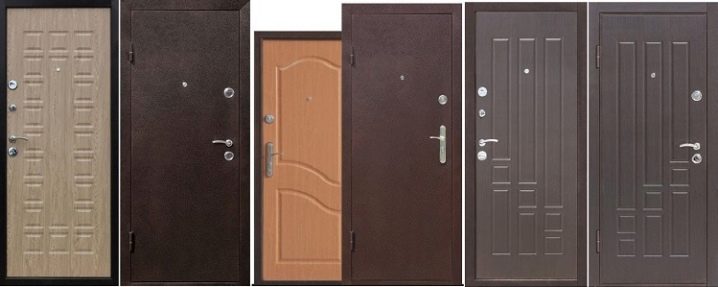 يقدم المصنعون الآن عددًا كبيرًا من نماذج هذه الأبواب التي تختلف في التصميم والمظهر. تصنع الأبواب الخارجية الأكثر تكلفة من عوارض معدنية رفيعة ومزينة بمواد رخيصة الثمن. في أغلب الأحيان ، يتم استخدام جلدي ، بطانة ، MDF لهذا الغرض. هذه تصميمات رفيعة إلى حد ما ليست موثوقة للغاية. لكن على الرغم من كل هذا ، فهي دافئة جدًا..