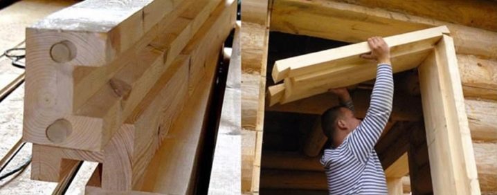 في حالة ما إذا كانت الجدران تتكون من منزل خشبي ، فإن تركيب الباب يحتاج إلى كتلة واحدة فقط. ولكن بالنسبة لمنزل السجل ، سيتعين عليك تقوية الشريط حتى يتمكن من تحمل الوزن الثقيل لهيكل الباب. بدلاً من شريط خشبي ، يمكنك استخدام قناة معدنية ، مما يسهل المهمة إلى حد كبير. بعد تأمين القضبان الجانبية ، حان الوقت للانتقال إلى تشكيل المدخل. للقيام بذلك ، تحتاج إلى عمل جوزة تتكون من شريط سميك على شكل حرف T..