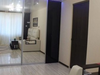 عند استخدام أنماط مختلفة من تصميم الأبواب والصفائح في الشقة ، يمكنك اختيار أوراق الباب المجهزة بقشرة مختلفة. وستتوافق جوانبها مع الجزء الداخلي من غرفتين في وقت واحد. ستكون تكلفتها عالية ، لكن مثل هذا الحل سيحل العديد من المشكلات دفعة واحدة في التصميم.