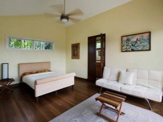 إذا تم اختيار أثاث طبيعي باهظ الثمن للغرفة ، فيمكن التركيز عليه بشكل رئيسي. يمكن توزيع الألوان المتبقية من النطاق المحدد بين الأبواب والصفائح أو الجدران ، والجمع بينها.