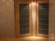 في أماكن المعيشة ، تبدو الأبواب المصنوعة من خشب الجوز مع إدخالات زجاجية مصنّعة على شكل أشكال هندسية مع تركيبات ذهبية جيدة. إنها تمنح المقصورة الداخلية مظهرًا متطورًا كاملاً..