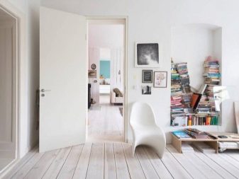 يسود النمط العام للديكور الداخلي للشقة فيما يتعلق بالغرف المصنوعة بأسلوب مختلف. إذا تم استخدام صفائح مختلفة في غرف مختلفة ، فمن الضروري أن تجد ظلًا لأوراق الباب يمكن دمجه عالميًا. هنا يمكنك التركيز على ظلال محايدة من الخشب الفاتح والعاج ودرجات أخرى ، أو الذهبي – ألدر ، خشب البتولا. يمكنك الحصول على عتبة خاصة في الأبواب ، والجمع بين ألوانها مثل المخزن المؤقت.