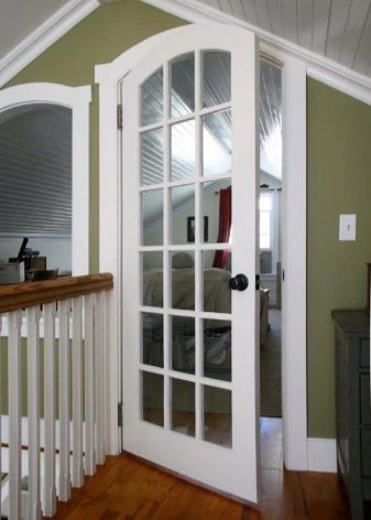 - تتكون الأبواب ذات القوس المنفصل من ورقة مستطيلة كلاسيكية مثبتة فوقها قوس منفصل. هذا الخيار هو الأكثر شيوعًا. في الوقت نفسه ، يتوافق العنصر المقوس مع النمط الرئيسي للباب..