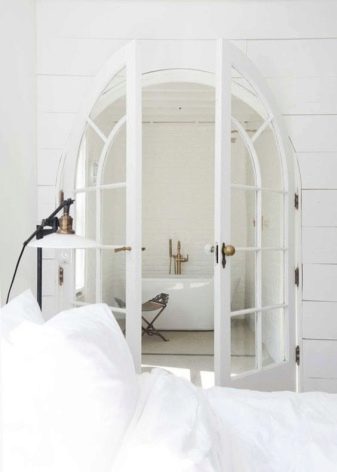 يجب أن يكون مفهوما أن الأبواب المقوسة هي نوع من التعديلات القياسية المستطيلة. يمكن أيضًا أن تكون مجهزة بواحدة أو اثنتين من ضلفتي الفتح. اليوم ، أصبحت اللوحات الثلاثية شائعة بشكل خاص ، وهي مناسبة للمنازل الخاصة الكبيرة ذات الغرف الفسيحة..