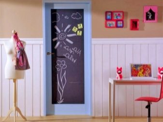 بالنسبة لغرف الأطفال ، يوصى باختيار أبواب مشرقة وغير قياسية. يمكن أن تكون مجموعة متنوعة من الألوان مع زخرفة مثيرة للأطفال..