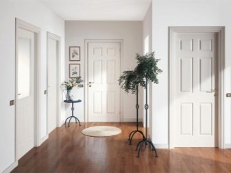 أبواب الشقة مصنوعة من خشب البلوط والزان والرماد والقيقب والصنوبر والتنوب. تشمل مزايا هذه النماذج الود البيئي ، على عكس النماذج الأخرى ، فهي لا تضر بصحة الإنسان ، ولها تصميم جذاب وعزل للحرارة والصوت. لكن الأبواب الخشبية الصلبة ستكون ثقيلة ، وهي ليست مريحة جدًا للاستخدام ، خاصةً إذا كان هناك أطفال صغار في المنزل. أبعاد هذه المنتجات قياسية وفردية..
