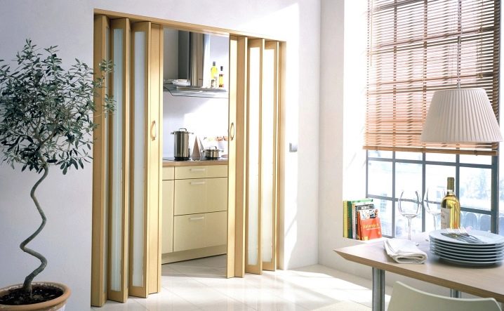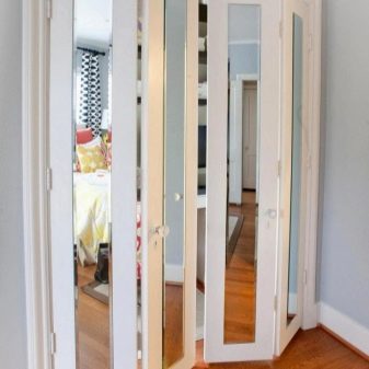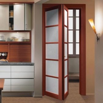 أو باب الكتاب. عادة ما يكون رقيقًا وشبيهًا بالأكورديون عند فتحه. من المناسب اختيار “كتاب” لفتحه بعرض 70 سم وأكثر ، وإلا فلن يكون هناك مساحة صغيرة للعبور الحر. بعد كل شيء ، تتجمع في الفتحة وتحتلها في العرض.