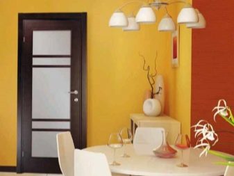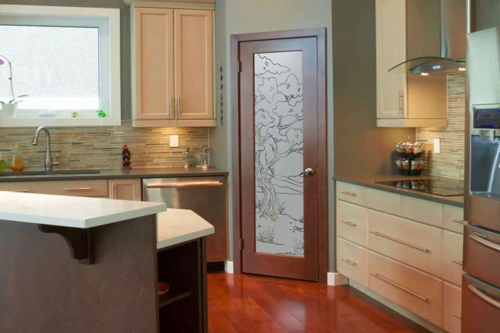 تعمل الأبواب الزجاجية على توسيع المساحة بصريًا وجعلها مشرقة بسبب حقيقة أن الضوء ينتقل بسهولة. بالنسبة للمطبخ ، تعتبر الألواح الزجاجية بالكامل غير عملية: ستبقى بصمات الأصابع على السطح المصقول. بديل – باب خشبي بزجاج قطري أو رأسي أو أفقي.