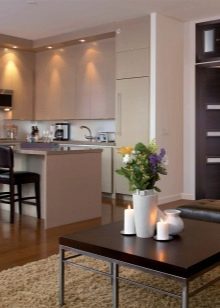 إذا كان المطبخ صغيرًا ومنطقة الطهي تقع في المنطقة المجاورة مباشرة للباب ، فيجب عليك اختيار قماش يسهل غسله ولا تمانع في التخلص منه. إذا كان الموقد قريبًا من الباب ، أثناء الطهي ، فإن رذاذ القلي سوف يسقط عليه ، مثل البخار والماء ، مما يعني أن القماش قد يفسد قريبًا. لكن هذه المطابخ هي الاستثناء وليس القاعدة. وبالنسبة لها ، سيكون الخيار الأفضل هو قماش مغلف أو مكسو بالبيئة..