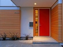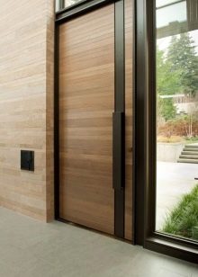 - عند اختيار باب لمنزل خشبي في الضواحي ، من الأفضل الانتباه إلى الخيارات المعدنية أحادية اللون للقماش بدون زجاج.