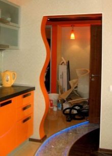 كيف تم اختراع بديل خفيف الوزن قوس كاذب. يتم توفير بوابة مستطيلة عادية بإدخال مجعد من اللوح الجصي. يمكن حتى للمبتدئين إنشاء مثل هذا الهيكل ، وإذا شعر القوس بالملل ، فيمكن تفكيك الحوائط الجافة بسهولة وتثبيت بوابة أو باب كلاسيكي بدلاً من الفتحة. لا ينبغي أن تكون الأقواس الزائفة بيضاوية تمامًا ، فمن الأفضل اختيار نسخة مستطيلة بزوايا دائرية. قد لا يكون ارتفاع الفتح القياسي من 190-200 سم كافياً.