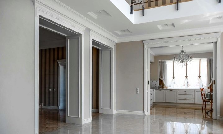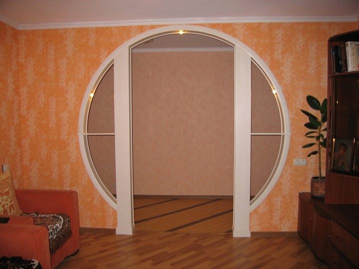 تسمح لك هياكل الجبس بتحويل الانتباه مباشرة من الافتتاح وخلق وهم بمساحة واحدة على أراضي غرفتين مدمجتين. غالبًا ما تُستكمل فتحات اللوح الجصي بتشطيبات أخرى ، على سبيل المثال ، أفاريز البولي يوريثين الملصقة لقولبة الجص.