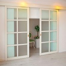 - يجب أن تكون حذرا مع الأبواب الزجاجية. في كثير من الأحيان ، يتم الترحيب بورقة باب زجاجية بالكامل فقط في الحمامات والساونا ، وكذلك في مراكز التسوق والمؤسسات العامة المماثلة ، ولكن ليس في المنازل. يُنصح باختيار الأبواب من مواد تقليدية أكثر ، مع ترك الأجزاء الزجاجية فقط كجزء من الزخرفة..