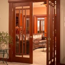 اعتمادًا على ميزات التصميم ، يتم تمييز المداخل ، مما يعني تركيب باب ، أو فارغ. تصنع فتحات الأبواب على شكل صندوق ، يتم بعد ذلك إرفاق باب من أي تكوين: انزلاق أو طي أو تأرجح.