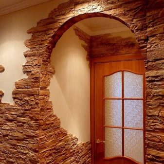 لا يوجد تدريب خاص مطلوب: يمكن وضع الحجر مباشرة على الجدران مع وجود مخالفات وتشققات ، وسوف يغطي جميع العيوب بالكامل وسيثبت بقوة. يجب وضع الحجر على جانبي المدخل ، وهذا سيخلق تركيبة أكثر تناسقًا وطبيعية..