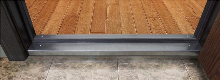 من بين أنواع هذا التصميم ، تتميز النماذج ذات الاسم المثير للاهتمام وغير المعتاد – المقصلة. إنها متصلة بنهاية الباب. عندما يغلق الباب ، ينزلقون لأسفل ويمزقون الفجوة تمامًا بين الأرضية والباب..