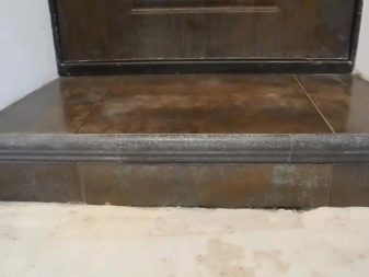 - الحجر والخرسانة تستخدم بشكل أساسي للتركيب عند المدخل من الشارع وعلى الشرفة. لا ينصح بتثبيت مثل هذه المنتجات داخل الغرفة بسبب وزن الهيكل نفسه وحجمه. يمكن إنهاء هذا النوع من العتبة بسهولة باستخدام صفح وعناصر زخرفية أخرى..