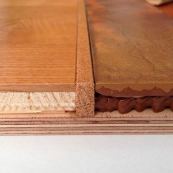 - كورك – يستخدم عند الضرورة لإخفاء الفرق بين مستوى الأرضية في الغرف المختلفة. هذه المادة مرنة للغاية وقابلة للدهن مقارنة بالخيارات الأخرى المعروضة..