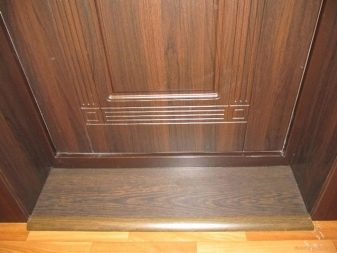 تم بالفعل بيع بعض الأبواب كاملة مع عتبة. هذا مريح للغاية ، حيث لا داعي لإضاعة الوقت في البحث عن النسخة المطلوبة. في حالة عدم وجود مثل هذا العنصر على الأبواب في شكله النهائي ، يمكن شراؤه بشكل منفصل وتثبيته بشكل مستقل..