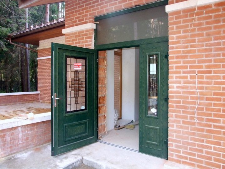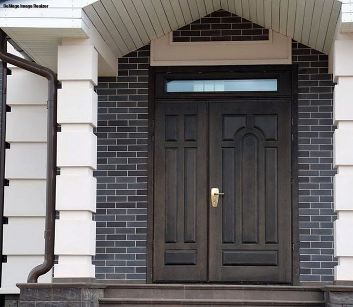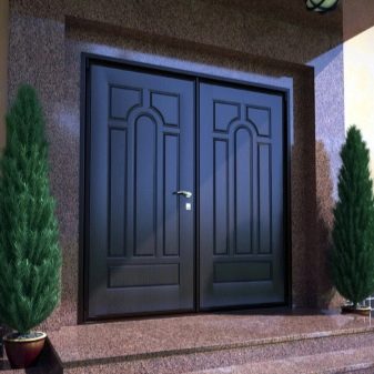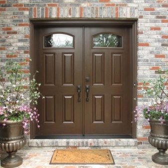 اختيار نموذج معين, عليك أن تأخذ في الاعتبار ميزات تصميم المبنى. بالنسبة للمباني المبنية من الطوب ، فإن الأبواب المعدنية العمياء أو المنتجات ذات الإضافات الزجاجية الصغيرة مناسبة. من الأفضل تأمين النوافذ الزجاجية بشبكات معدنية إضافية. إذا كان المدخل يقع في وسط الواجهة ، يجدر التفكير في خيار تصميم بأبواب بنفس العرض ، والتي ستزين المبنى وتعطيه مظهرًا أكثر جمالية..