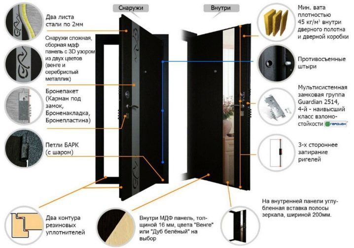 عادةً ما تكون الأبواب ذات الأغراض الخاصة مجهزة بنوعين من الأقفال: الرئيسية والإضافية. يجب أن يحتوي القفل الرئيسي على مفتاحين وعدة أنواع من الآليات السرية. بالنسبة للقفل الإضافي ، يكفي جزء سري واحد.