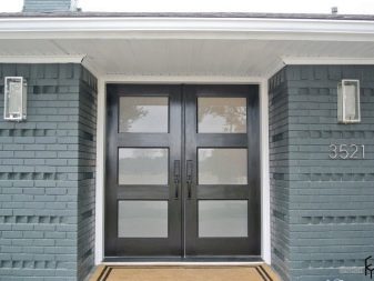 في الأكواخ ، تم تجهيز كتل المدخل بمجموعة دفع ، وقفل على طول الكفاف ، مما يضمن نوبة محكمة ، عتبة من الألومنيوم – 40 مم. يمكن استخدام الأبواب ذات الضلفتين مع وصلة فاصلة.