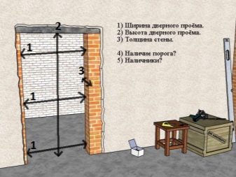 قبل إجراء القياسات ، من الضروري تفكيك الأبواب القديمة ، بما في ذلك الألواح الخشبية. إذا لزم الأمر ، قم بإزالة الجوز.