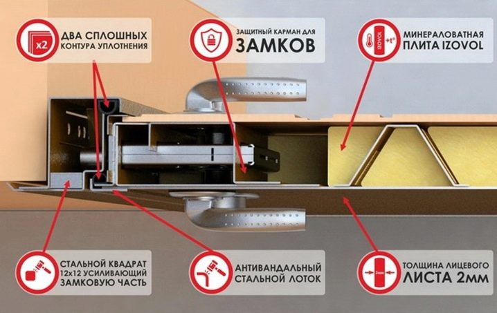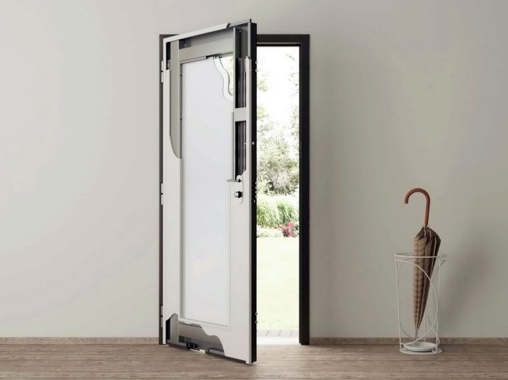 بالإضافة إلى ذلك ، يتم استكمال هذه الخيارات بمفصلات مقواة. بفضل هذه العناصر ، يحمل هيكل الباب القاعدة المعدنية الثقيلة.