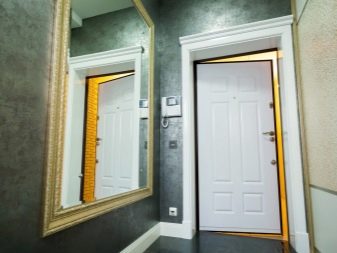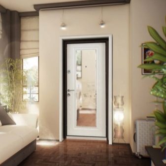 باب بمرآة – وهذا مناسب حقًا. سيوفر مساحة في الشقة ، لا تحتاج إلى شراء مرآة لتعليقها في الردهة – سيتم تثبيتها بإحكام في باب الشقة من الداخل. حسنًا ، إلى جانب ذلك ، إنه أنيق ومريح – قبل الخروج إلى الشارع ، هناك دائمًا وقت للنظر إلى نفسك من جميع الجوانب..