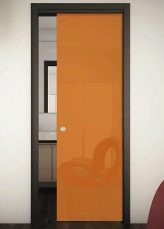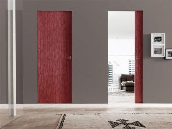 يتطلب الباب المنزلق مساحة حائط للتركيب وفتح مجاني. إذا كان الجدار سميكًا نوعًا ما ، فيمكن أن يكون الباب “مخفيًا”: سيفتح في مكان مخصص تم إنشاؤه في الحائط.