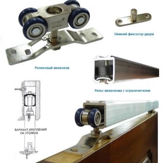 الدليل السفلي – صمولة توجيه ، يتم تضمينها عادةً في مجموعة هذه الملحقات أو يتم شراؤها بشكل منفصل. هذا العنصر المرئي لا يناسب دائمًا مالك الغرفة. سيكون البديل هو مربع الاختيار ، والذي تحتاج إلى عمل أخدود به قاطع وإخفاء الدليل فيه. السكة السفلية مثبتة على الأرض ويمكن ضبطها بالمسامير والعربات. مع المستوى ، تأكد من التحقق من موقع الباب وآليات التثبيت ، وفتح في كل مرحلة.