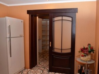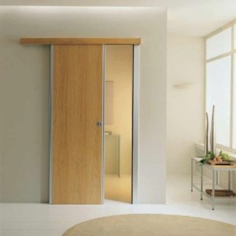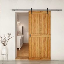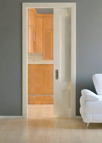يتطلب الباب المنزلق مساحة حائط للتركيب وفتح مجاني. إذا كان الجدار سميكًا نوعًا ما ، فيمكن أن يكون الباب “مخفيًا”: سيفتح في مكان مخصص تم إنشاؤه في الحائط.