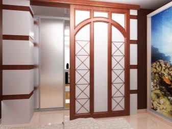 - نصف القطر. تبدو هذه التصاميم رائعة للغاية وغير عادية. حركة أوراق هذه الأبواب في شكل نصف دائرة. هذه نسخة أصلية من الأبواب ، لكنها ليست مناسبة دائمًا للشقق الصغيرة. ولكن بالنسبة للديكورات الداخلية المصممة ، فإن هذا الخيار يناسب جيدًا..