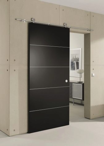 الآن يجدر التحدث بمزيد من التفاصيل حول مبدأ آلية الانزلاق. تصميم الباب بسيط للغاية ويتكون من ورقة باب وأدلة أفقية وبكرات خاصة.