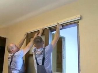في الحالة الأولى ، سيتم وضع الهيكل بأكمله على ملف تعريف متصل بالجدار. في الحالة الثانية ، يمكن أن تتحرك اللوحة القماشية أيضًا على التعليق السفلي. لكن هذه الطريقة لها عيب واحد ، وهو أنه سيكون هناك عتبة أمام الأبواب. أيضًا ، في بعض الأحيان يمكن استخدام نوعين من هذا النوع من التثبيت في وقت واحد. هذا يضمن موثوقية ومتانة النظام..