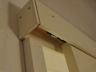 فوق السكة ، يمكنك تثبيت ربطة مسطحة لتغطيتها. تحتاج إلى اختياره وفقًا لأسلوب الغرفة. يمكن رسمها أو لصق ورق الحائط على السطح. بعد ذلك ، يتم إرفاق أقفال أو مقابض بالباب..
