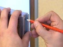 لكي تعمل الأدلة بشكل متوازٍ مع الأرضية ، من الضروري إخراج خط مستقيم فوق الفتحة ، حيث سيتم تثبيت سكة التوجيه. إذا كان هناك عنصر زخرفي لا يزال مثبتًا على الحائط ، فسيحتاج أيضًا إلى ترك مساحة له ووضعه فوق الباب تمامًا..