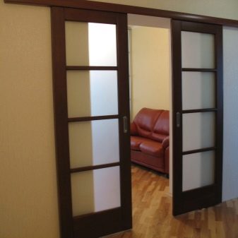 - أبواب متتالية. تتكون دائمًا من ورقتين على الأقل ، أحدهما يمكن أن يكون ثابتًا ، ويمكن أن يتحرك وفقًا لأجزاء أخرى. يتميز هذا النوع من البناء بميزة مميزة: كل باب له سكة توجيه خاصة به ، وعند الفتح ، يجب تجميع الوشاح على جانب واحد من الفتحة..