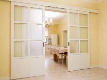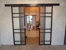 - فتح الأبواب. آلية الحركة من هذا النوع لها دليلين ، مثل الأبواب المتتالية ، لكن خصوصيتها أنها تقع داخل المدخل ، وعند فتحها تترك نصفًا فقط مجانيًا للمرور.