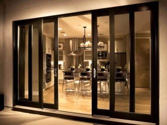 خيار التصميم الأكثر إثارة للاهتمام هو الأبواب التي يزيد عرضها عن 2 متر ، وتتكون من عدد كبير من اللوحات ، يمكن أن يكون كل منها مستقلاً تمامًا عن الآخرين.