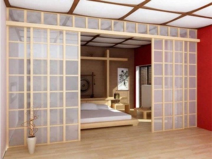 - تتطلب ميزات تصميم الأثاث وترتيبه موقعه على طول الجدران ، ثم يعد الباب المنزلق حلاً مثاليًا ، خاصةً شريط كاسيت ، لأنه لا يشغل مساحة الغرف على الإطلاق ؛