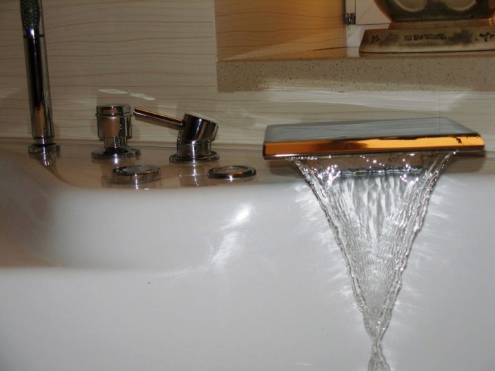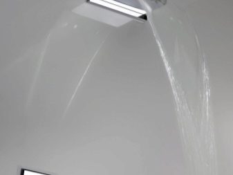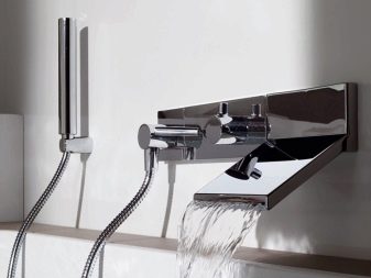 من أنواع الرافعات الأخرى ، تختلف الشلالات في تصميم خاص للصنبور. يفتقر إلى آلية التهوية الخاصة ، وفي النهاية يكون له شكل مسطح وأعرض ، حيث يتم توفير تدفق المياه بكثرة وبشكل متساوٍ ، على غرار شلال طبيعي. تعتبر السمة المهمة الأخرى هي الإنتاجية العالية ، وهي ممكنة بسبب أنابيب الإمداد السميكة التي يتم تزويدها بالصمام في المجموعة الكاملة. خلاف ذلك ، تم تهجير هؤلاء في نواح كثيرة مماثلة لما هو معتاد.