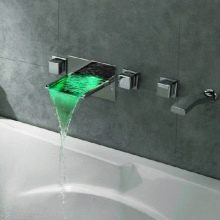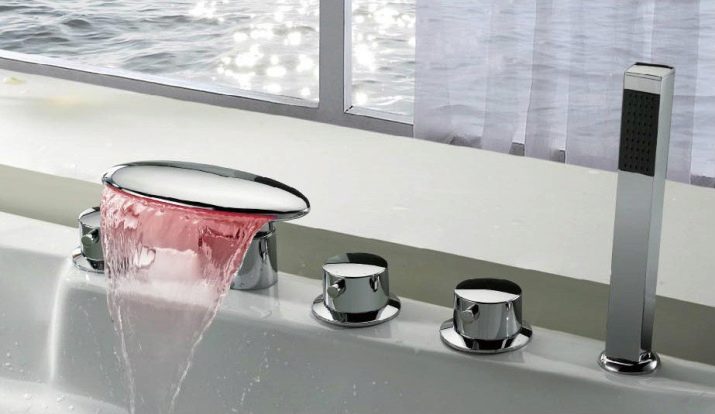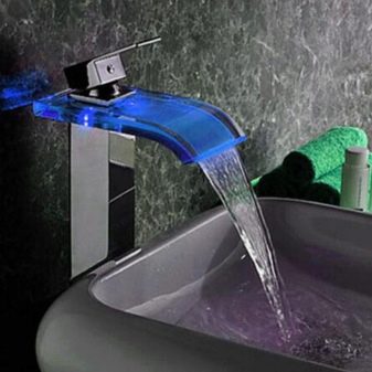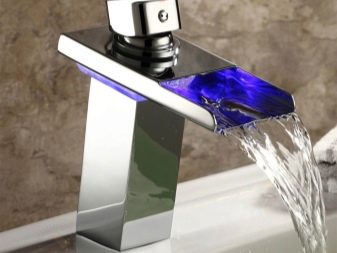يتم استكمال العديد من الخلاطات المتتالية بمصابيح مدمجة تضيء المياه بألوان مختلفة. عند التفكير في مثل هذا الجمال ، يمكنك التهدئة والاسترخاء بسرعة. بالإضافة إلى الوظيفة الزخرفية ، فهي مسؤولة أيضًا عن السلامة: تشير شدة لون الماء إلى درجة حرارته ، وكلما كان أكثر إشراقًا ، زاد تدفق المياه. هذا الابتكار مفيد بشكل خاص للعائلات التي لديها أطفال صغار. أما الأشكال فهي مختلفة وتتراوح من مربع إلى دائري. بفضل تصميمها غير العادي ، تتناسب هذه الرافعات تمامًا مع أي نمط حديث..