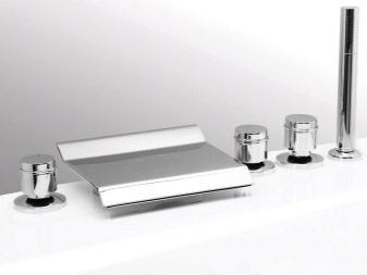 نظرًا لأن تثبيت الجهاز يتم بشكل منفصل ، يمكن وضع كل عقدة في المكان الأنسب, على سبيل المثال ، ضع الخلاط التعاقبي بجوار الفوهة والدش على الجانب الآخر. يتوفر أيضًا حنفية مثبتة على الحائط مع صنبور شلال عريض للبيع ، ويتم تثبيت علبة سقيها على الحائط ، واختيار ارتفاع مناسب مسبقًا. في هذه الحالة ، يتم إخفاء مصدر المياه خلف لوحة زخرفية أو تقليم..